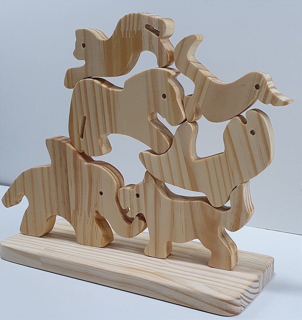 Empilhe, equilibre e crie torres de animais! Um desafio divertido que desenvolve a concentração e a coordenação motora.