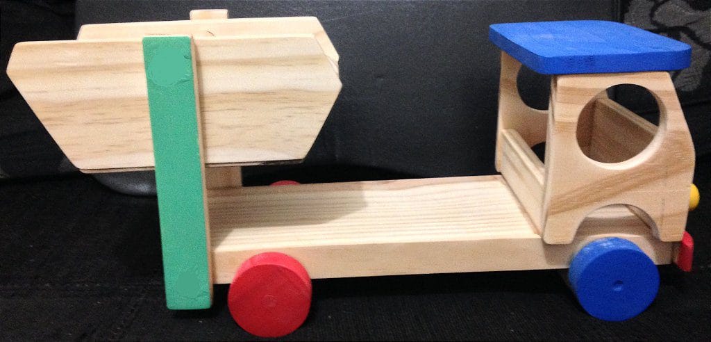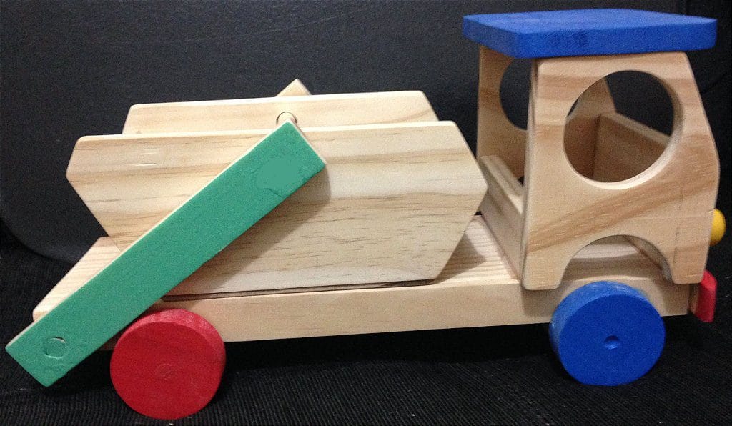 Mãos à obra! Um caminhão de entulho de madeira, robusto e pronto para qualquer brincadeira de construção e faz de conta.