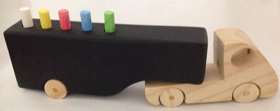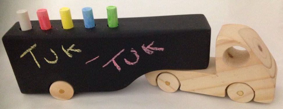A caçamba do caminhão é uma lousa! A criança pode decorar seu veículo, desenhar a carga que está transportando ou simplesmente rabiscar. É um brinquedo que incentiva o movimento, a coordenação motora grossa e a criatividade.