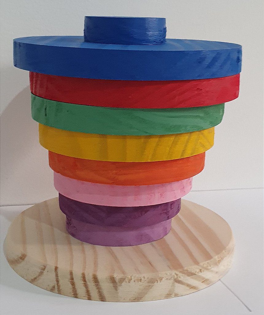 Ao empilhar os anéis coloridos, a criança pratica a coordenação olho-mão, a destreza e começa a entender conceitos como ordem, tamanho e sequência. É um desafio que cativa e ensina ao mesmo tempo.